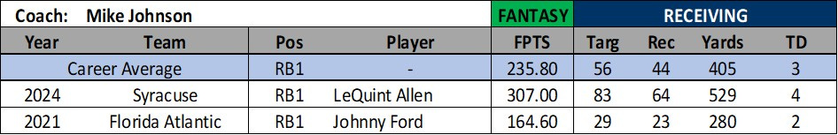 #8 Mike Johnson - Offensive Coordinator: Syracuse