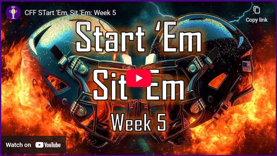 When you’re debating what to do with a spot in your fantasy line-up there’s one thing you can always depend on – experience. Purple Reign unlocks his 17 years of College Fantasy Football experience to bring you his hand-picked start/sit player selections, and answer your submitted questions. Joe Arpasi will release question submission threads on X (Twitter) and Substack each week.