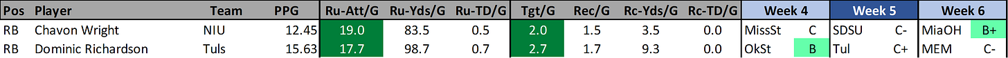 Tye Edwards didn’t make this list because of only stepping up in Week 3 but he should also be considered a potential volume play. Wright makes this list despite a low workload in Week 1. Richardson just made the cut here but his next three match-ups aren’t great.