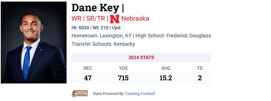 Key was featured as a Riser option for 2025. Moving to Nebraska will pay off big time for Key as he steps into the WR1 role of a CFF Coaching System that is #9 in Target Magnet wide receivers and #9 in POWR3 receivers. Nebraska returns its leading receiver from 2024 in Jacory Barney, and adds depth with Nyziah Hunter and Cortez Mills. Dylan Raiola is an NFL caliber quarterback and he enters his second year as the starter. Running back Emmett Johnson also returns as provides the offense an effective pass catcher out of the backfield. Key was only mentioned twice as a Schedule Pairing option, and that has to due with Nebraska’s passing Strength Of Schedule. While season long graded out with a B+, they received a B for the first month and a C for the fantasy playoffs (team does have a bye in Week 12).