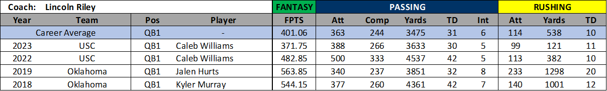 Last season Maiava had to bide his time on the bench until mid-November when he took over the starting quarterback job. He came out firing in his first start scoring nearly 29 fantasy points. He would only reach 25+ fantasy points once more that year. You could see that Maiava was talented but still raw in his four games as the starter, and having an offseason to polish his game will definitely help. He can run the ball when he needs to, but he isn’t the scrambling quarterback that fantasy owners have come to love in head coach Lincoln Riley's offense. He did score rushing TDs in two games last year, but with five rushing attempts or less each game. If he is allowed to run the ball with more frequency he could have tremendous fantasy value in 2025.