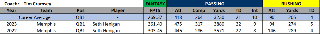 Lewis had floundered in his college career at Colorado and Nevada until the 2024 season when broke-out in a big way making plays with his arm and his legs. He carried the ball 157 times, averaging 4.9 yards per carry, and scoring 8 TDs on the ground. When he transferred to Memphis in the offseason many college fantasy analysts scratched their head about the system fit for Lewis. Offensive coordinator Tim Cramsey is know for high volume passing, but when you dig into the numbers he also lets his QB run the ball. Over the last three seasons the Cramsey QB1 has averaged 106 rushing attempts per season. Lewis may not throw for 3500 yards like we’re used to from Memphis’ offense, but his ability as a rusher might make him the best fantasy quarterback that Cramsey has ever had.