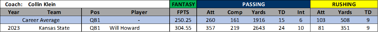 Reed is another player who started 2024 as the back-up but worked his way into the starting role. His play was very up and down, typically relying on his ability as a rusher more than his passing ability. He did register five games with 25+ fantasy points, but struggled with interceptions in his last five games of the season. The hopes are that his decision making will improve in 2025, and the offense has been upgraded with a crop of new talented receivers to throw to. In 2023 offensive coordinator Collin Klein guided Will Howard to a 304 fantasy point season at Kansas State, giving us an idea that a 300 fantasy point season is not unheard in this offense.