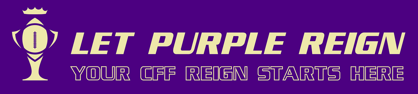 Joe Arpasi and Kevin from the The Devy Royale review Joe’s Top CFF Offenses To Target on the Let Purple Reign: Podcast channel on YouTube. Be sure to check out The Devy Royale on YouTube for great devy content.
